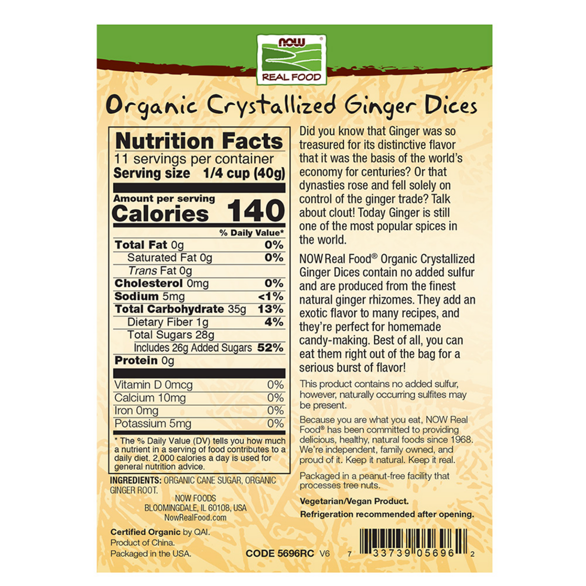 Os cubos de gengibre cristalizado orgânico NOW Real Food não contêm enxofre adicionado e são produzidos a partir dos melhores rizomas naturais de gengibre. Eles adicionam um sabor exótico a muitas receitas e são perfeitos para fazer doces caseiros. O melhor de tudo é que você pode comê-los direto da embalagem para uma verdadeira explosão de sabor!