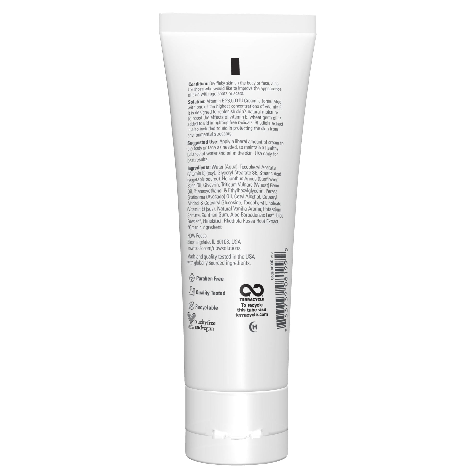 Solução: Creme Vitamina E 28.000 UI é formulado com uma das mais altas concentrações de vitamina E. Foi desenvolvido para repor a umidade natural da pele. Para aumentar os efeitos da vitamina E, o óleo de gérmen de trigo é adicionado para ajudar a combater os radicais livres. O extrato de Rhodiola também está incluído para ajudar a proteger a pele dos estressores ambientais.